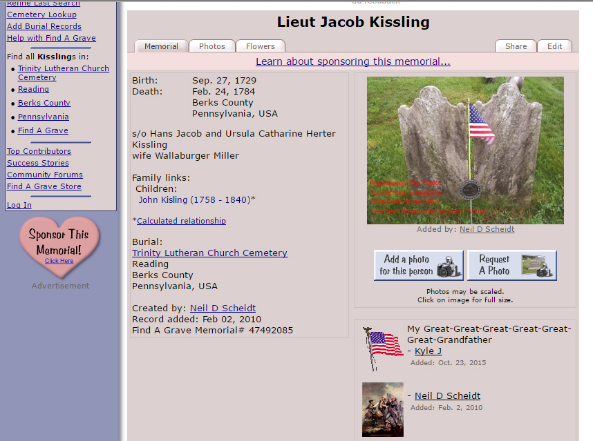 Family of Kisling, Hans Jacob and Müller, Walburga
